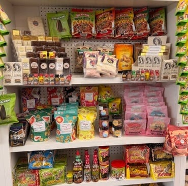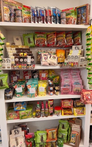 Small spaces filled with trending snacks, cups, shirts, spices, hot sauces, all types of souvenirs that bring flavor and fun to your day.
